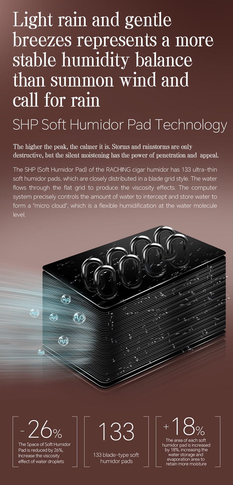 - Deep moisture penetration into cigars