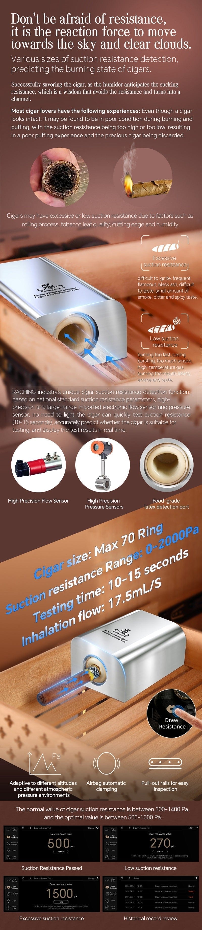 - Built-in cigar draw tester to measure resistance before lighting
